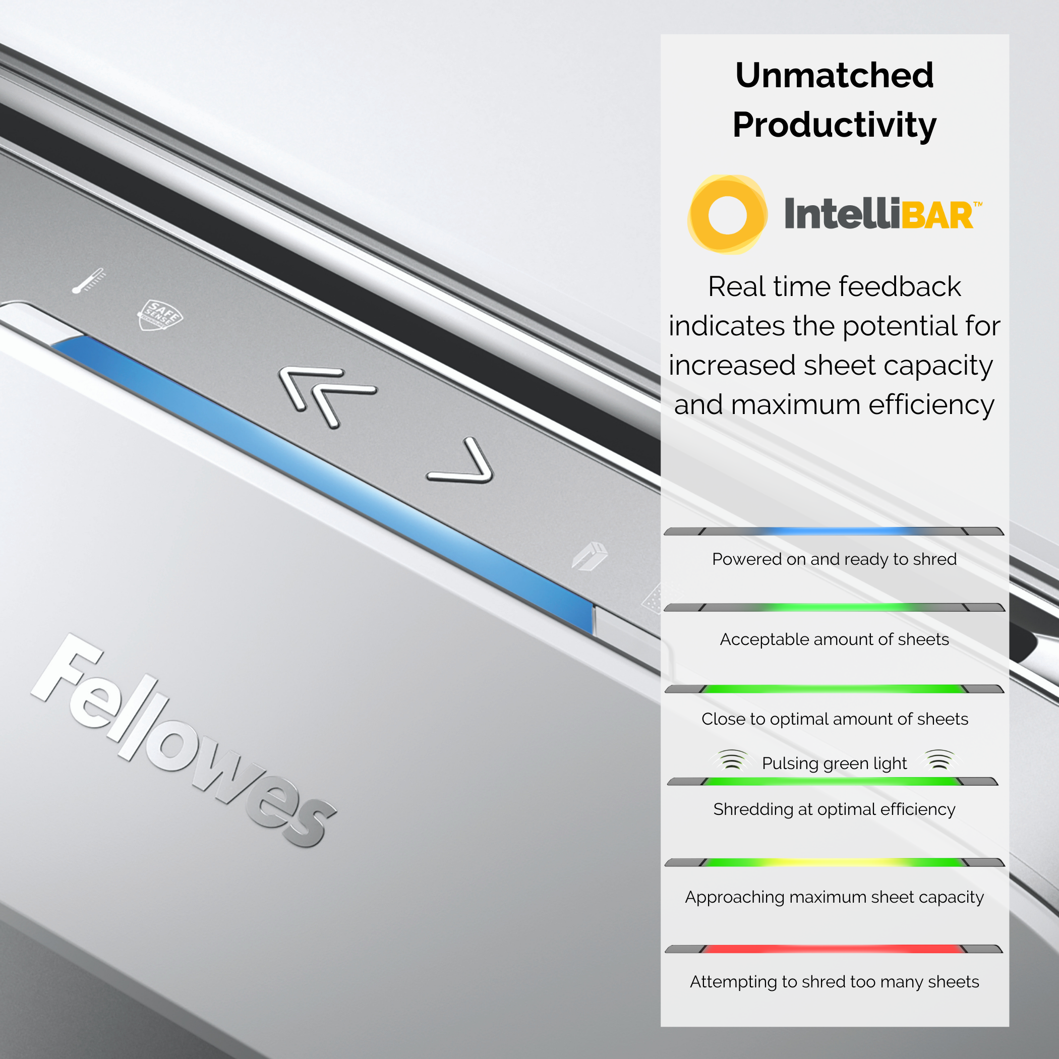 Den indikerer når papirkurven er ved at være fyldt eller når maskinens max-kapaciteten eller maximale køretide nærmer sig. Safesense®-teknikken stopper makuleringen hvis hænder kommer i kontakt med papirsåbningen og gør maskinen til et trygt indslag i hjemmemiljøer.