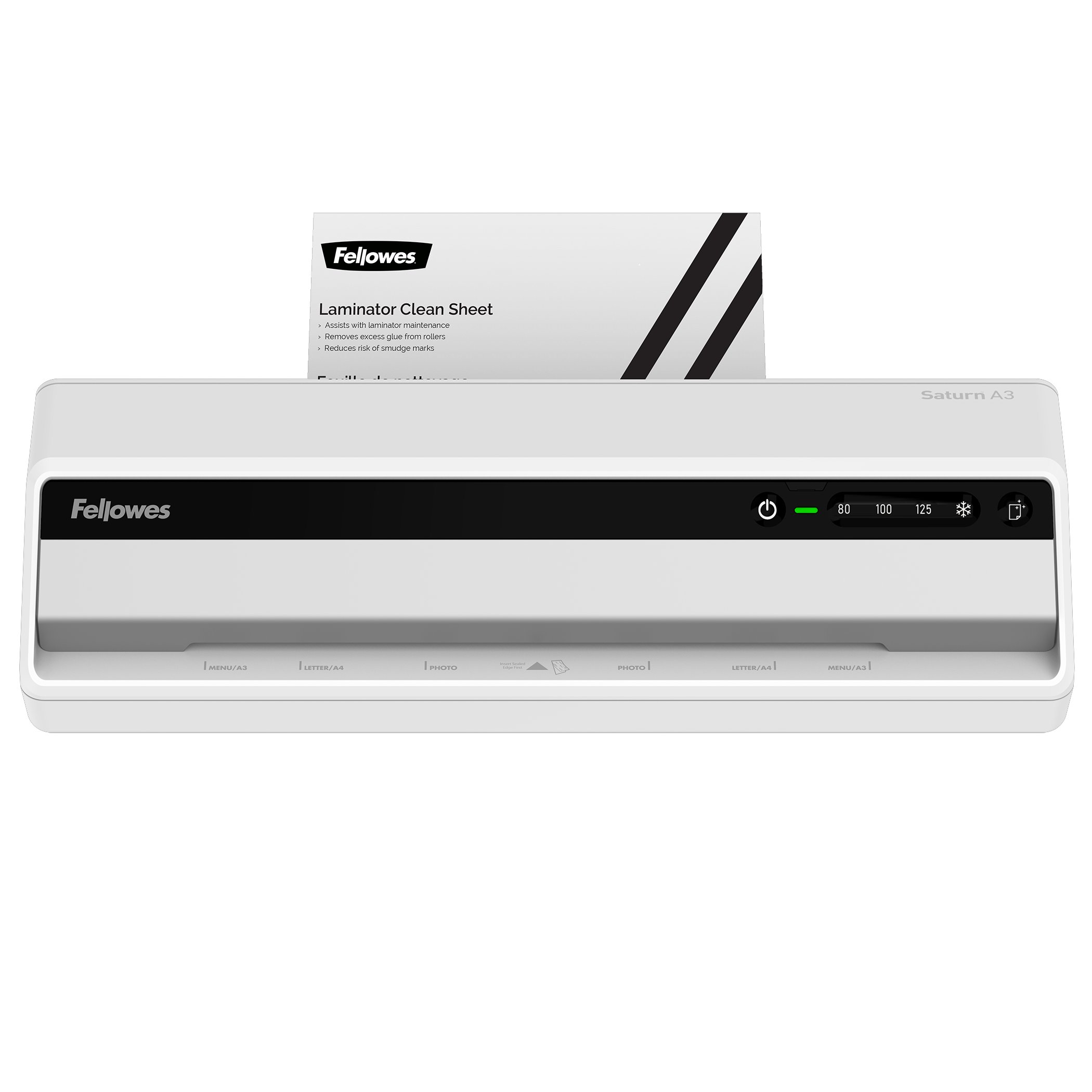 Fellowes® Saturn 3i A3-lamineringsmaskinen er udstyret med InstaHeat-teknologien, som forkorter opvarmningstiden helt ned til 60 sekunder, hvilket betyder, at du kan gennemføre dine lamineringsopgaver hurtigt og effektivt.
