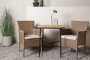 De medfølgende Malina stole har en let aluminiumsramme og er betrukket med beige flet i konstrotting, som giver sættet et indbydende og jordnært udtryk. Stolene har komfortable hynder og integrerede armlæn, så du kan læne dig tilbage og nyde pausen. De er også stabelbare, hvilket gør opbevaringen enkel.