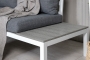 Den hvide aluminiumsramme kombineret med grå polywood-overflader og hynder giver et let og elegant udtryk, der matcher de fleste uderum.