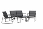 Loungemøblerne har en stabil stålramme og sæder i textilene, som giver omsluttende komfort og samtidig er meget holdbare til udendørs brug. Det medfølgende bord, med en elegant stålkonstruktion og en stilren glasplade, fuldender sættet og skaber en sofistikeret atmosfære, der indbyder til at nyde sommeren fuldt ud.