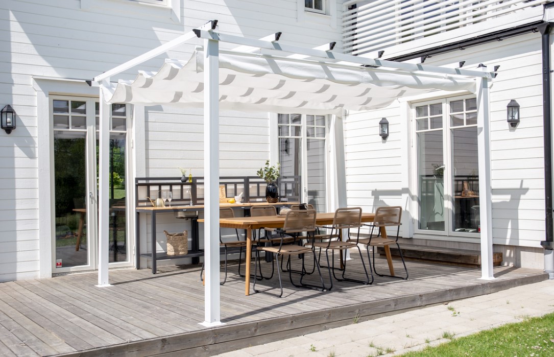 Vil I skabe endnu mere sammenhæng, kan plante- og blomsterkasser til jeres krydderurter og planter være flotte på en terrasse. Sæt en pergola op og tilføj skygge til jeres spiseplads. Find et havehus til når møblerne ikke er i brug og cyklen skal opbevares sikkert.