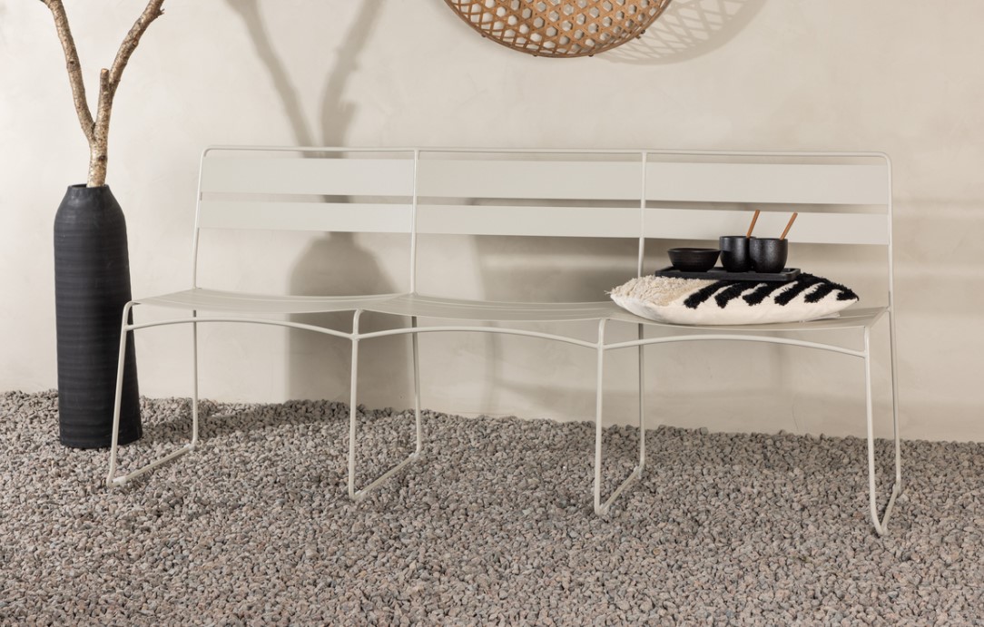 Et godt uderum består ikke altid af ét stort sæt. Ofte er det de små zoner eller rum forskellige steder i haven der udgør ét hele. Her er det de mindre møbler, der gør haven mere levende. En havebænk passer godt ved husmuren, under et træ eller i et roligt hjørne, hvor I gerne vil skabe et ekstra opholdssted. Det er en enkel måde at få mere ud af haven på uden at fylde for meget.