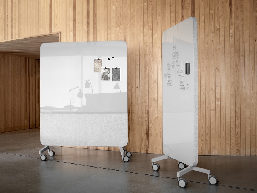 Bare fordi mødet foregår digitalt, betyder det ikke, at du skal undvære visuelle redskaber. Mange arbejder bedst med noter og skitser – og her er whiteboards og glastavler ideelle. Har du brug for meget plads, kan du vælge en dobbeltsidet tavle. Brug dem bag dig, under mødet eller del ideerne live via kameraet. De er også fordelagtige, når du vil planlægge, brainstorme eller illustrere en proces under et Teams- eller Zoom-møde.