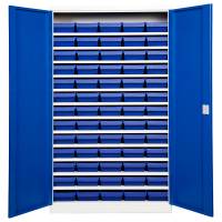 Komplet lagerskab med 48 små og 28 store lagerkasser!