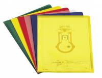 Dobbelt plastomslag med lodrette lommer i fuld længde på indersiden til venstre og højre.